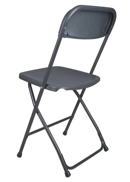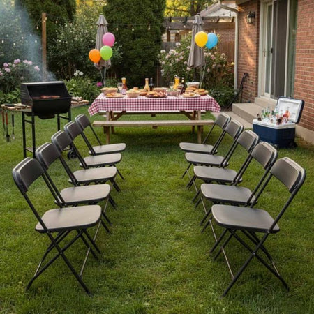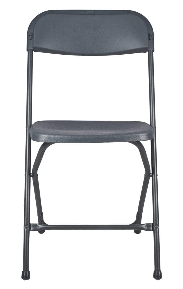 10 Pack Dark Gray Folding Chairs are ideal for venues needing a clean, strong, and professional look. Built from steel poly, these are commercial-grade chairs for outdoor gatherings or indoor functions.