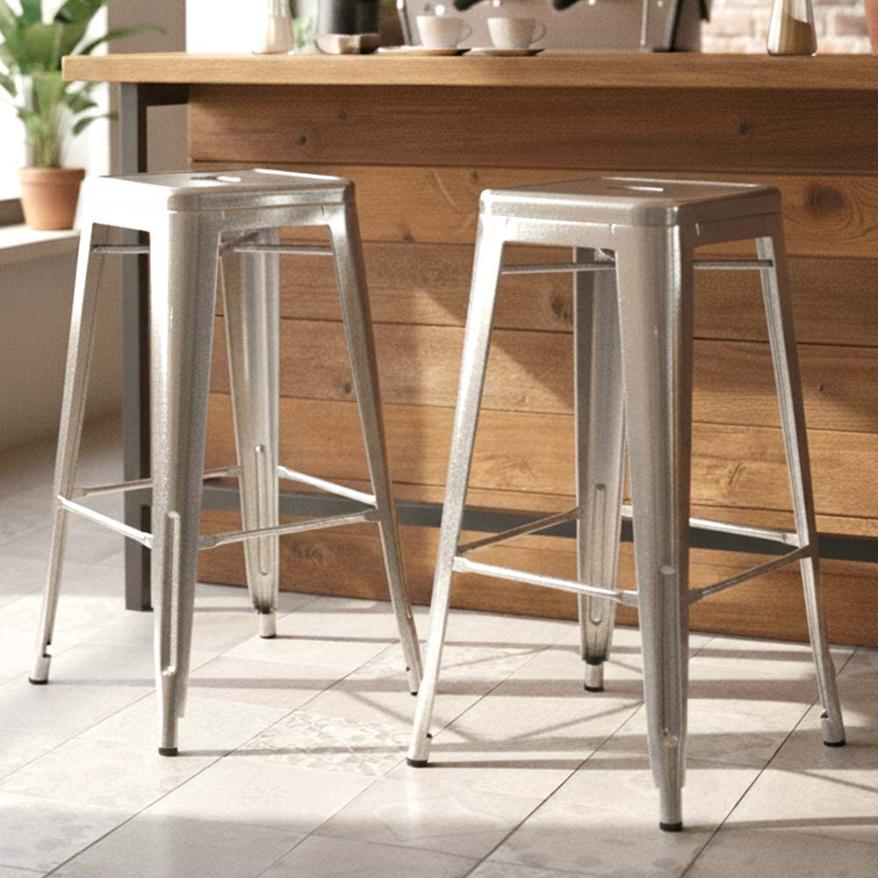 2 Pack Gunmetal Tolix Bar Stools, Durable Industrial Seating for Workspaces or Decks