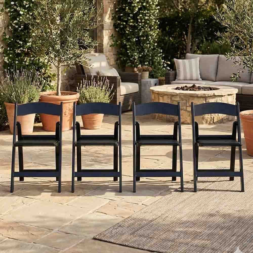 This Black SuperResin folding chair combines durability and style with a sleek finish. Built from long-lasting resin, it's lightweight, easy to transport, and folds flat for compact storage. Perfect for patios, extra dining seats, or multipurpose home use.