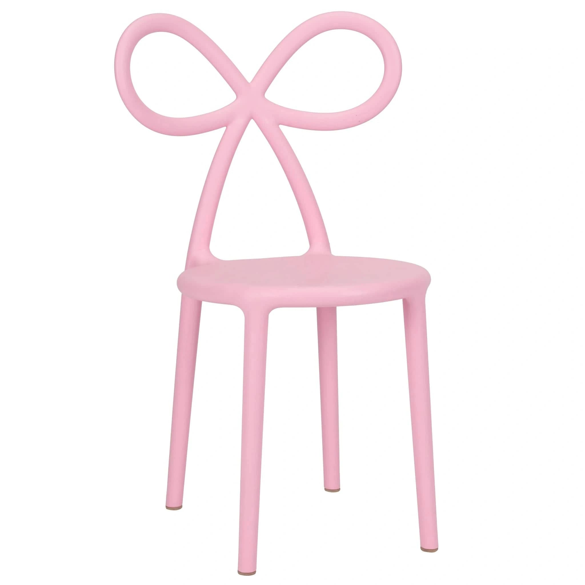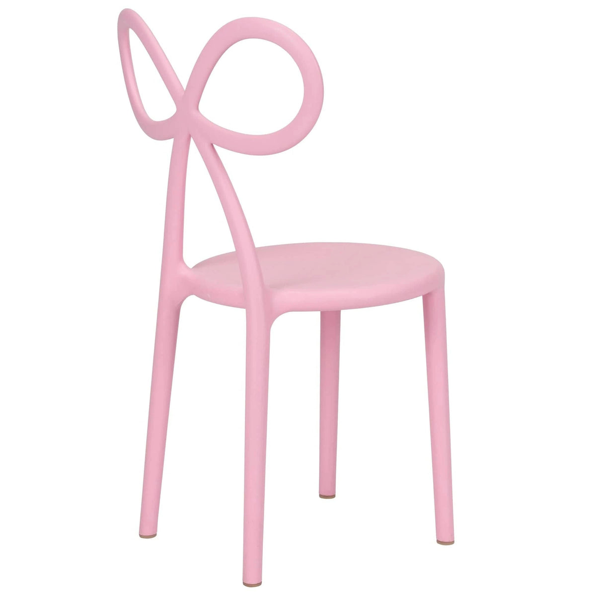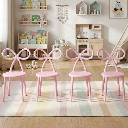 4 Pack Kids Pink Resin Bow Chair with Round Seat, Charming and Durable Seating for Girls Rooms