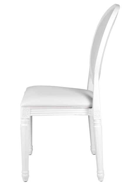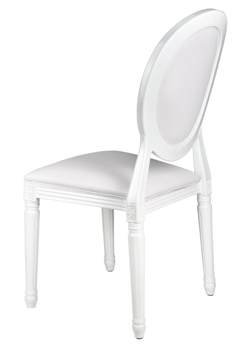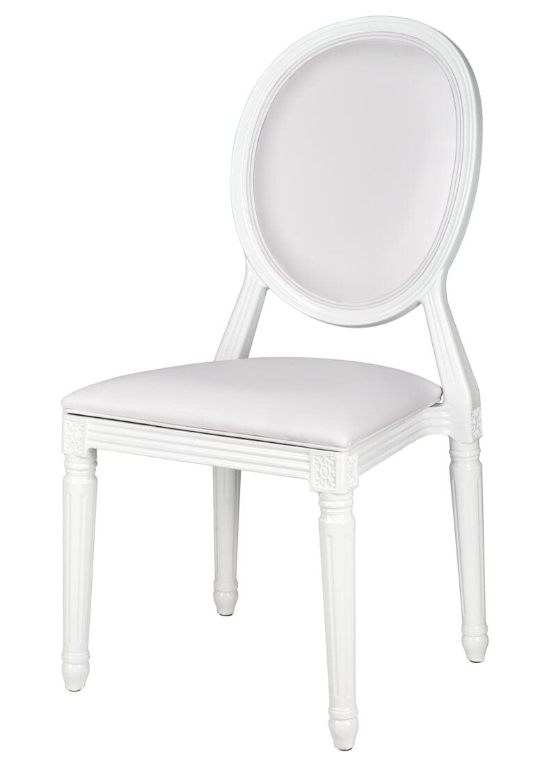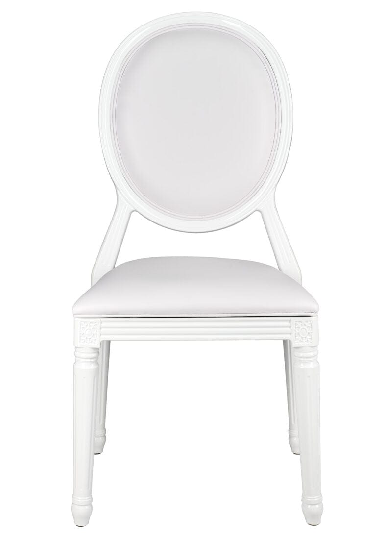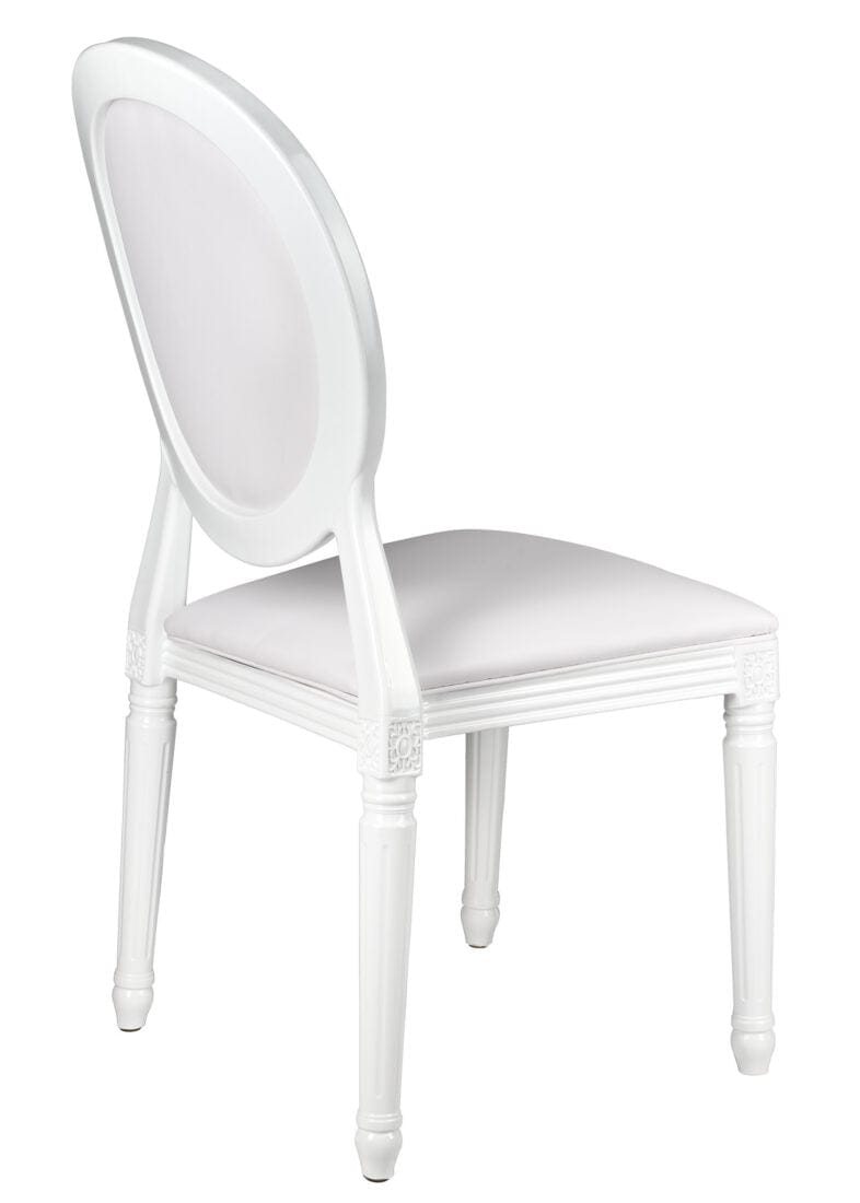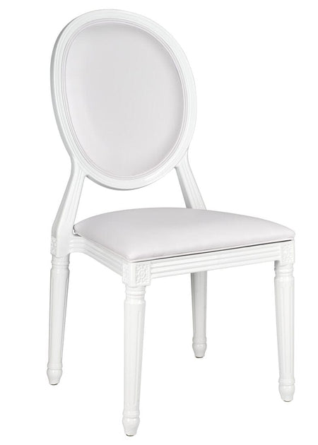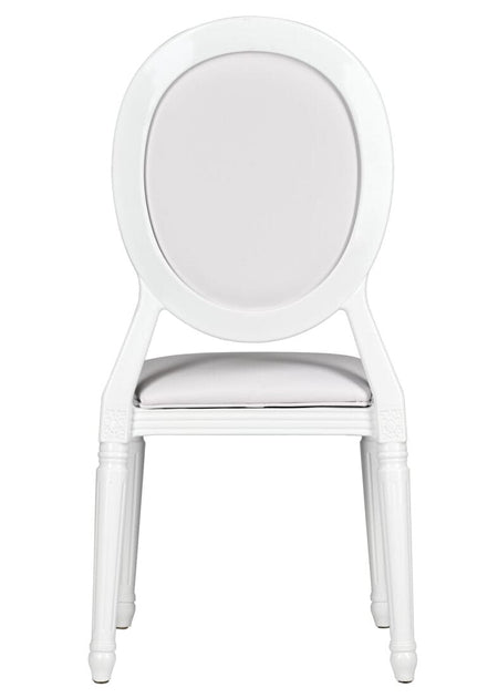 Minimal and chic, the White Resin Louis Pop Chair with White Vinyl Seat and Back is perfect for bridal events, baby showers, and monochrome decor themes. Its uniform finish and cushioned support create a high-end, comfortable seating solution.