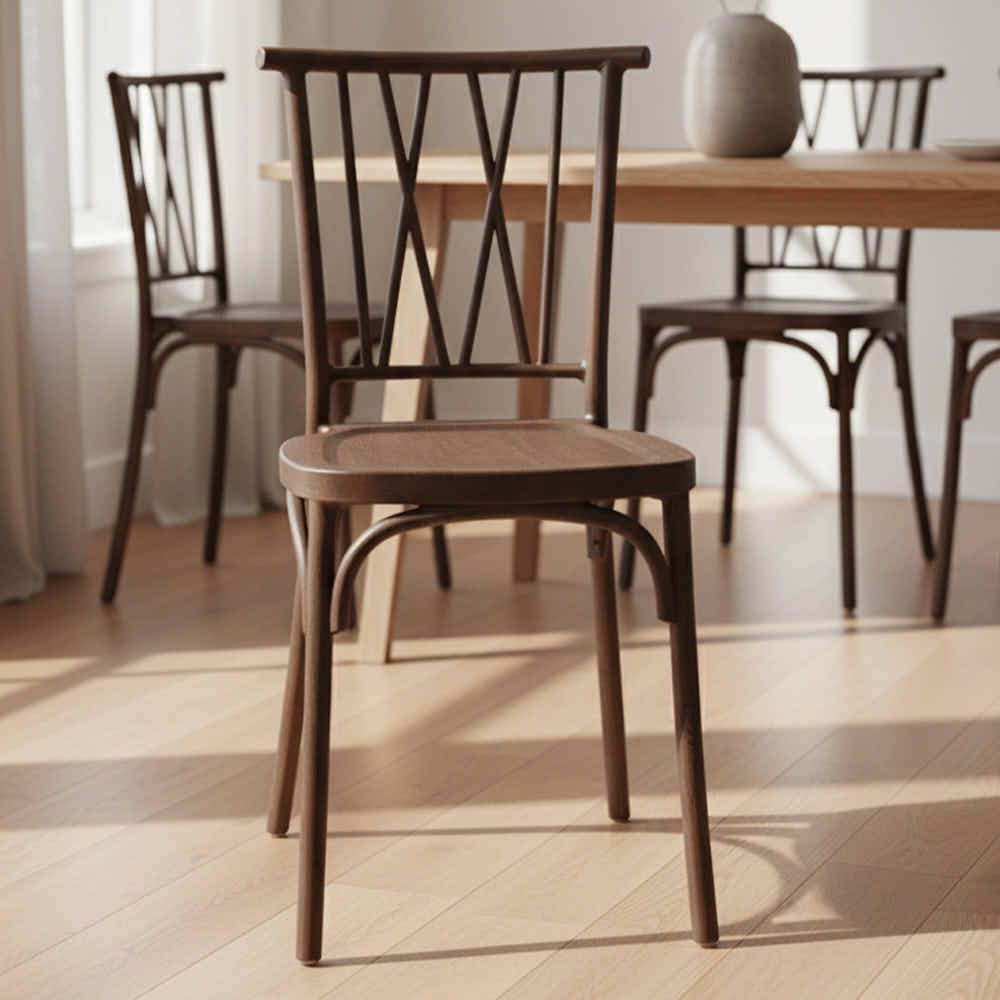 This fruitwood-toned resin chair brings natural wood tones to high-use home spaces without the maintenance. Built for daily life, it's ideal for use around breakfast tables, sunrooms, or relaxed dinner gatherings.