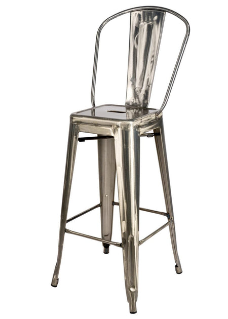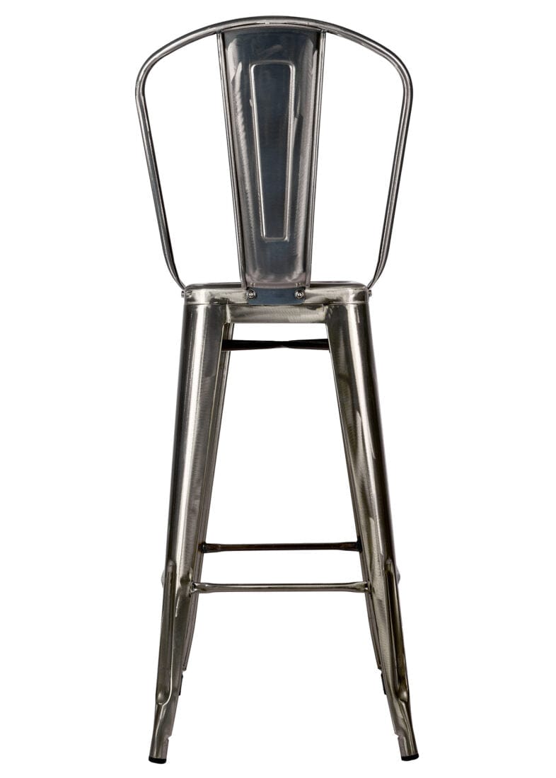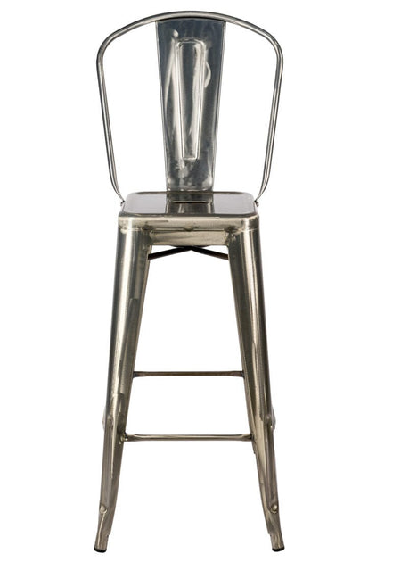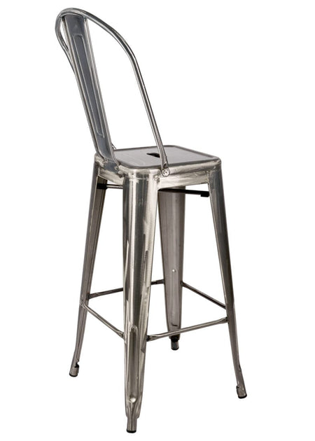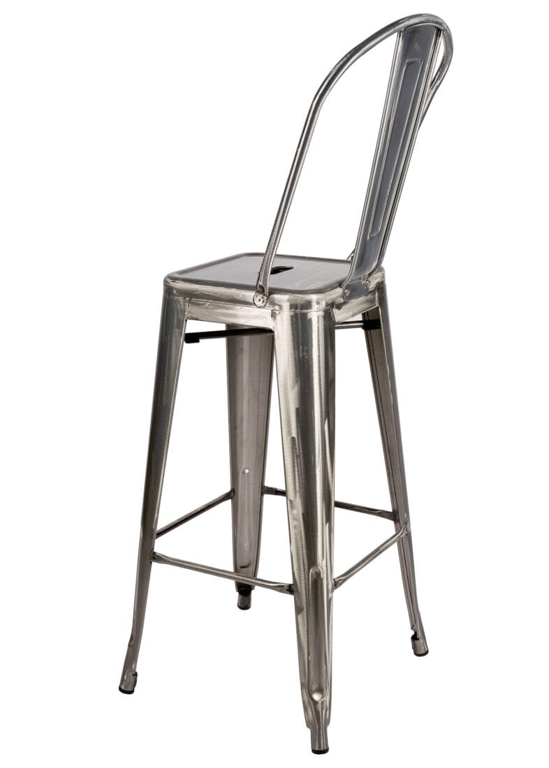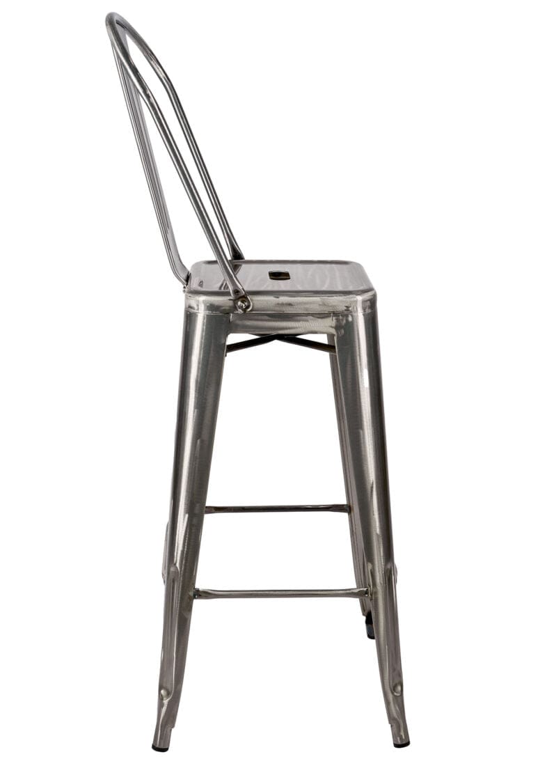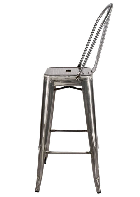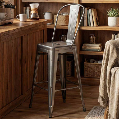 Bring industrial-chic to your home with this Gunmetal Gray hi-gloss Tolix-style metal barstool with back, a durable, weather-resistant metal bar stool that pairs perfectly with kitchen islands, home bars, patios, covered decks, or casual dining nooks. Constructed from sturdy steel and finished with a rust-resistant powder coat, this easy-to-clean barstool is designed for both indoor and outdoor use, with thoughtful details like rubber feet to protect flooring and a ventilated seat that sheds moisture. Sleek, versatile, and low-maintenance, it’s an ideal choice for homeowners seeking a long-lasting, modern industrial bar stool that complements a variety of décor styles.